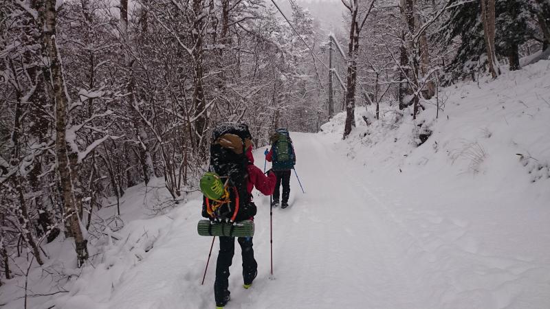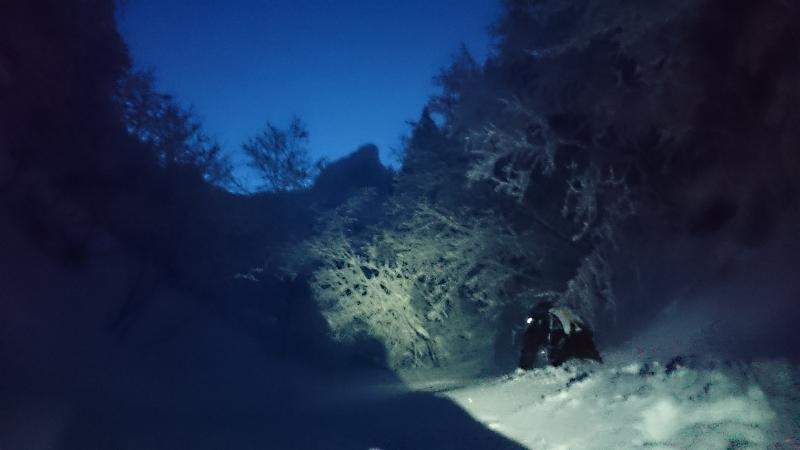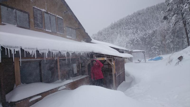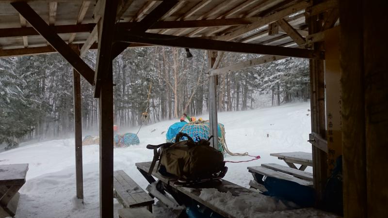 1日目:ジョウゴ沢でアイスの予定でしたが鉱泉についてテント設営していると15時を過ぎてしまいました。情報によるとラッセルしないと取り付けないみたいなので断念。アイスキャンディも時間が少ししか登れないので断念。早々に宴会をして就寝しました。