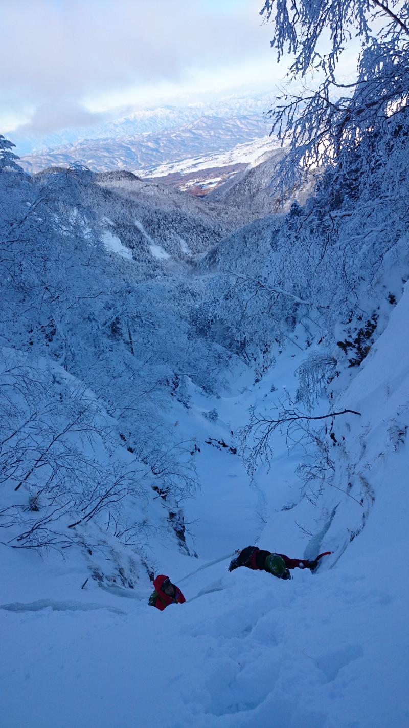 裏同心ルンゼは膝上~腰ラッセルでした。F1のナメ滝も下部は雪で埋まっていました。