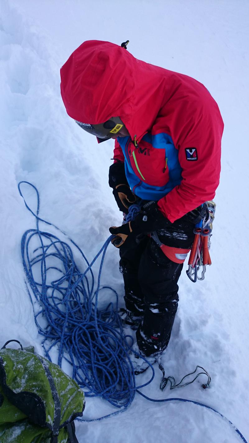 大同心基部からすぐ下はクライムダウンはいやらしかったので安全な場所まで50M懸垂。