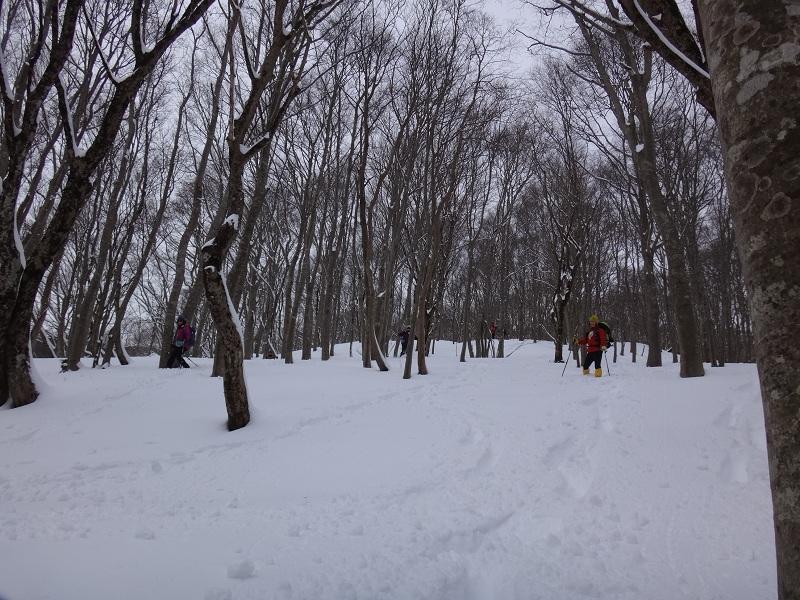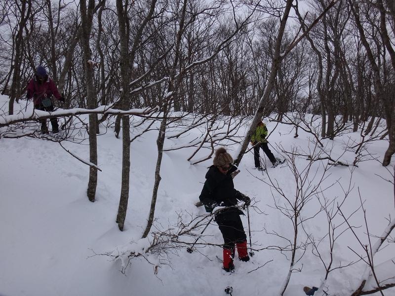 標高で700mを越えたあたりからは湿り気も少なく十分にスノーシューを楽しめた。