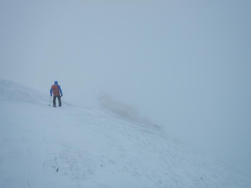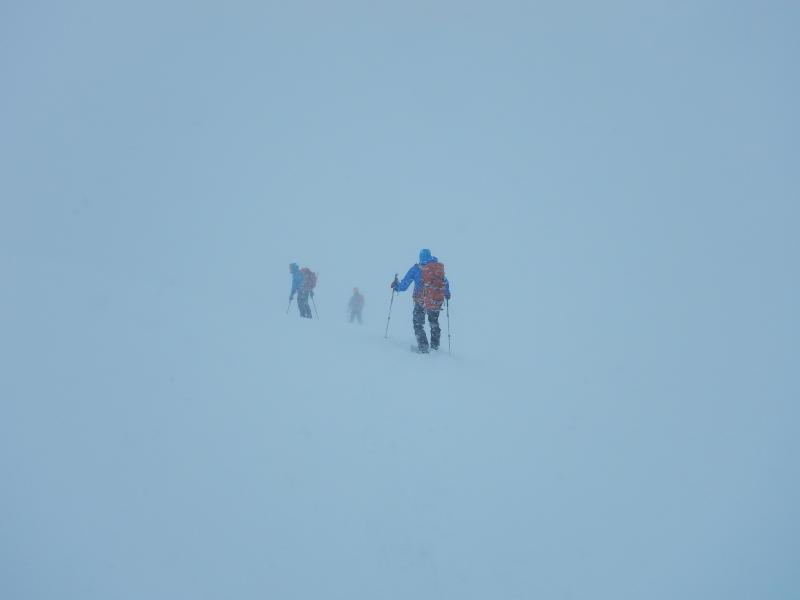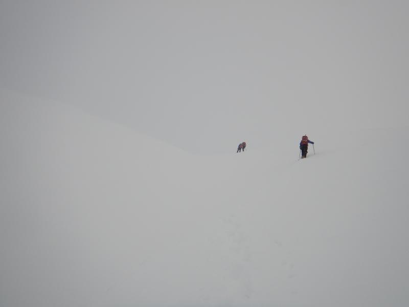 視界がないとルートファインディングが難しい。特に白岳への登りは雪崩の危険が高いので尾根沿いを行きたいが、巨大な雪庇ができやすいので、寄りすぎないように注意。斜面中ほどに地面までの亀裂があった。