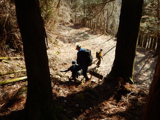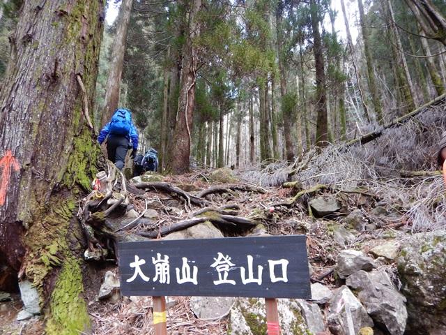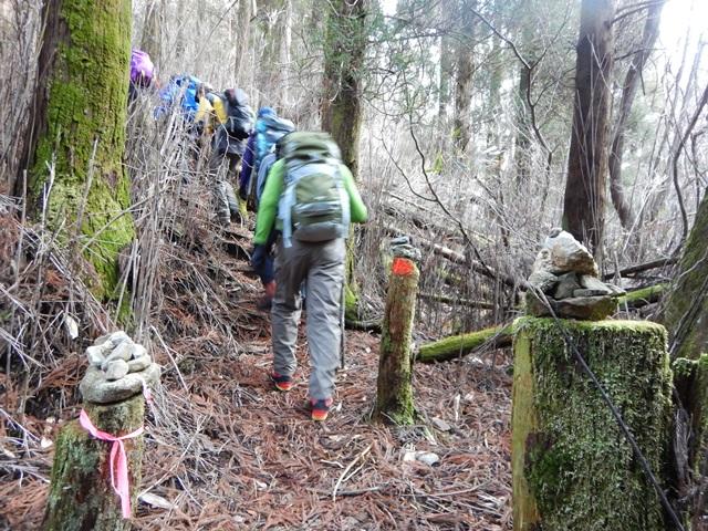 大崩山への最短ルートです。最初から急登です。木の枝で頭などを打たないように注意が必要です。道は、歩きやすく特に迷うところはありません。下りも急ですのでスリップに注意して歩いてください。