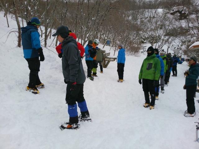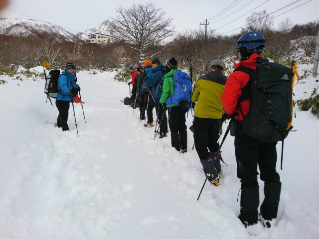 - 大丸駐車場⇒45分⇒那須岳登山指導所付近にて雪上訓練(約4時間)⇒30分⇒大丸温泉駐車場
