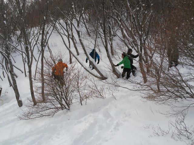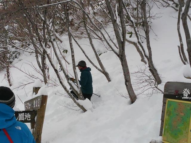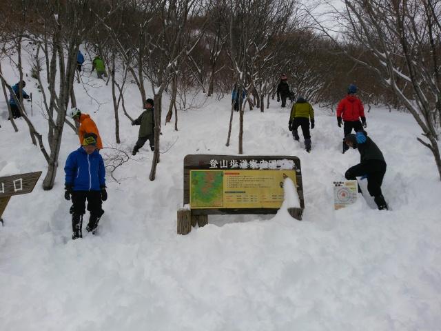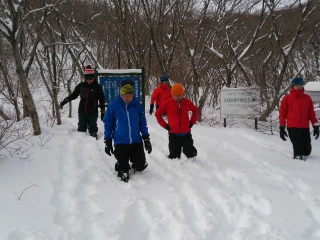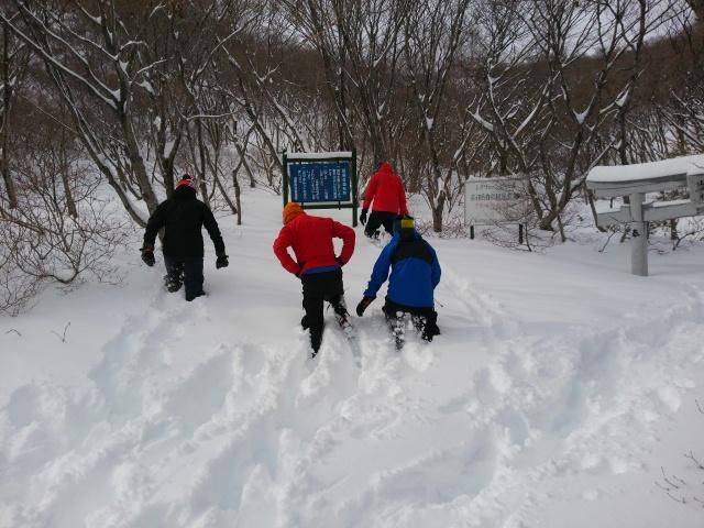 - 訓練もかねてノーアイゼンで登りましたが、スノーシューも楽しめるぐらいの降雪量がありました。