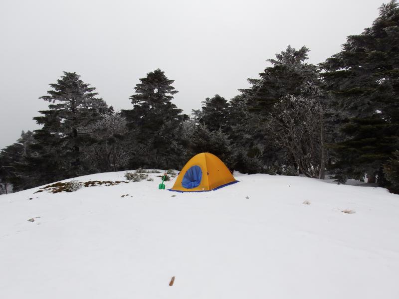 キャンプ適地の平らな場所にテントを張り、また1人占めの夜を過ごしました。