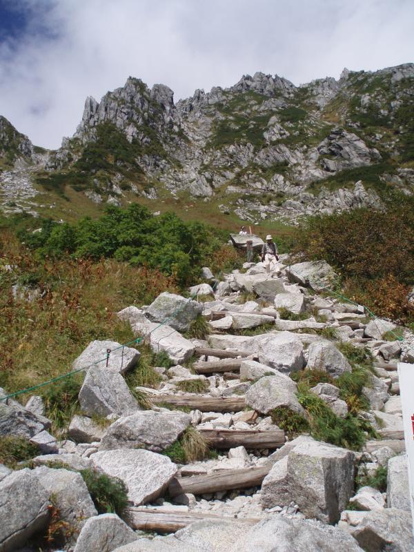 まずは宝剣山荘を目指して、八丁坂を行きます。