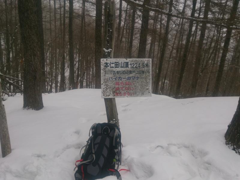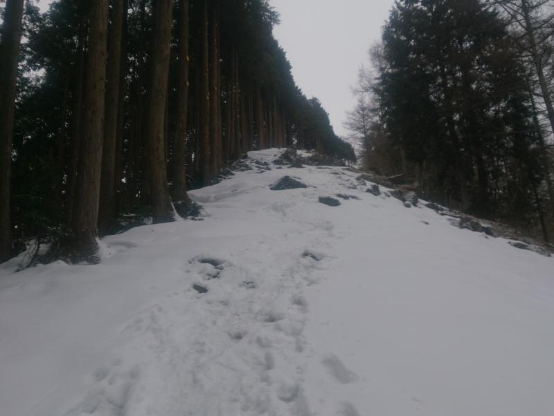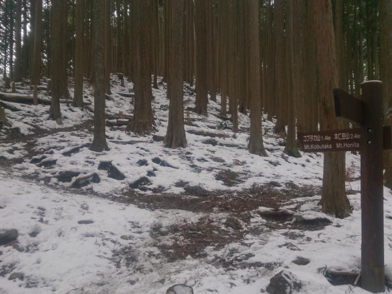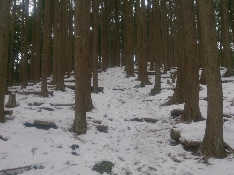 バイクで来たので、帰りが少し心配になりましたが、積もるほどではなかったので、そのまま本仁田山を目指しました。