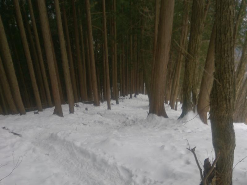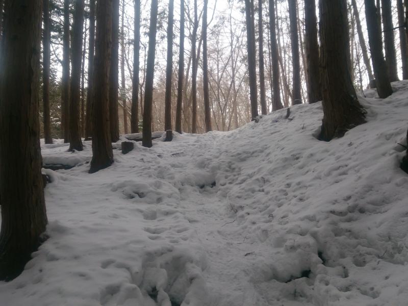 - 鳩ノ巣駅から登山を開始すると大根ノ山ノ神を過ぎて、コブタカ山への分岐を超えたあたりから雪が多くなって来ます。しばらく行くと防火帯の尾根歩きになり、この辺りからアイゼンを装着した方が良いです。