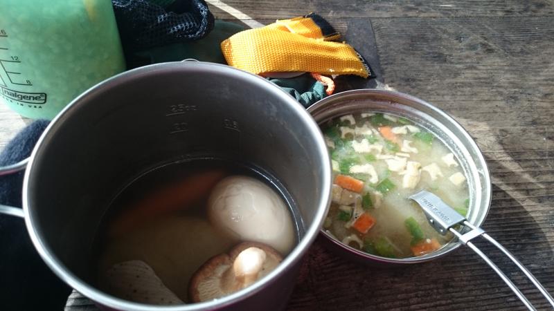 穂高湖に着いて昼食。おとな女子のまっちゃんが自作してくれたおでんです♪