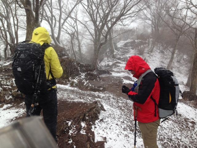 5合目あたりからちらほら雪がちらつき7合目から完全に雪景色。