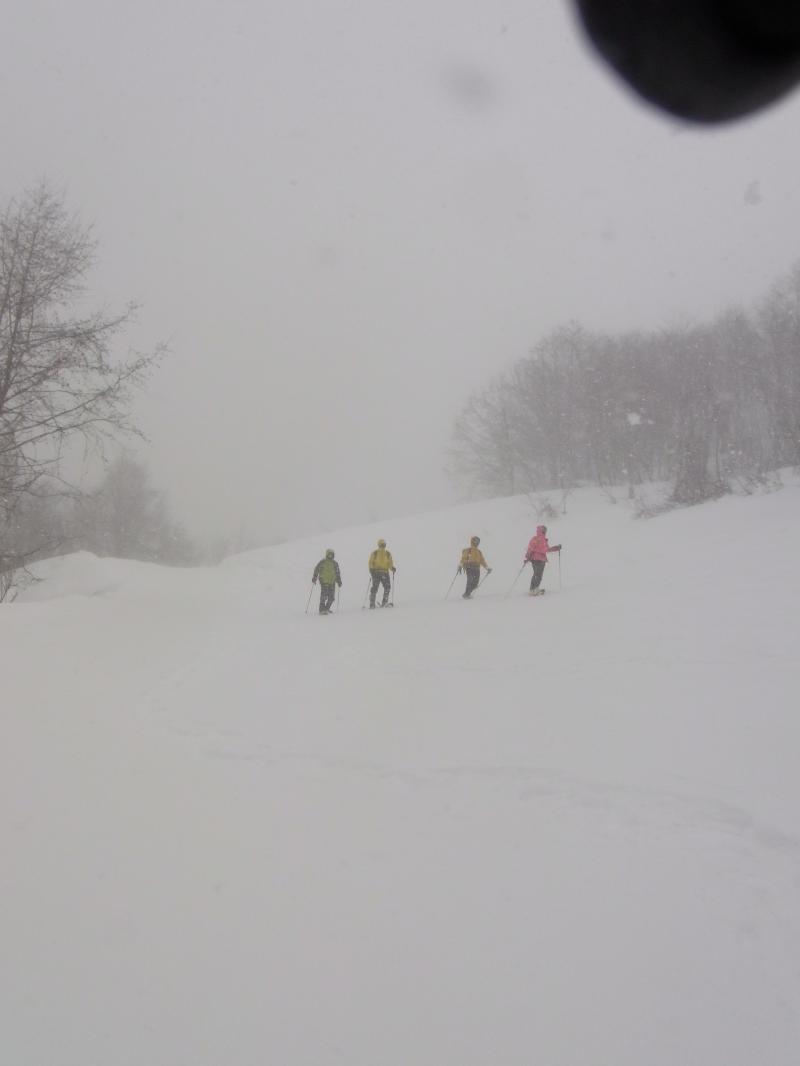 尚和氏はザックがでかくてリフトに持って行かれそうになっていた。第7リフトに乗ると降りしきる雪にウエアを濡らしながら、この天気は大丈夫なのか?とふたりで話し、こんどは奥に座ったわたしがリフトに持って行かれそうになり、不安がつのる。