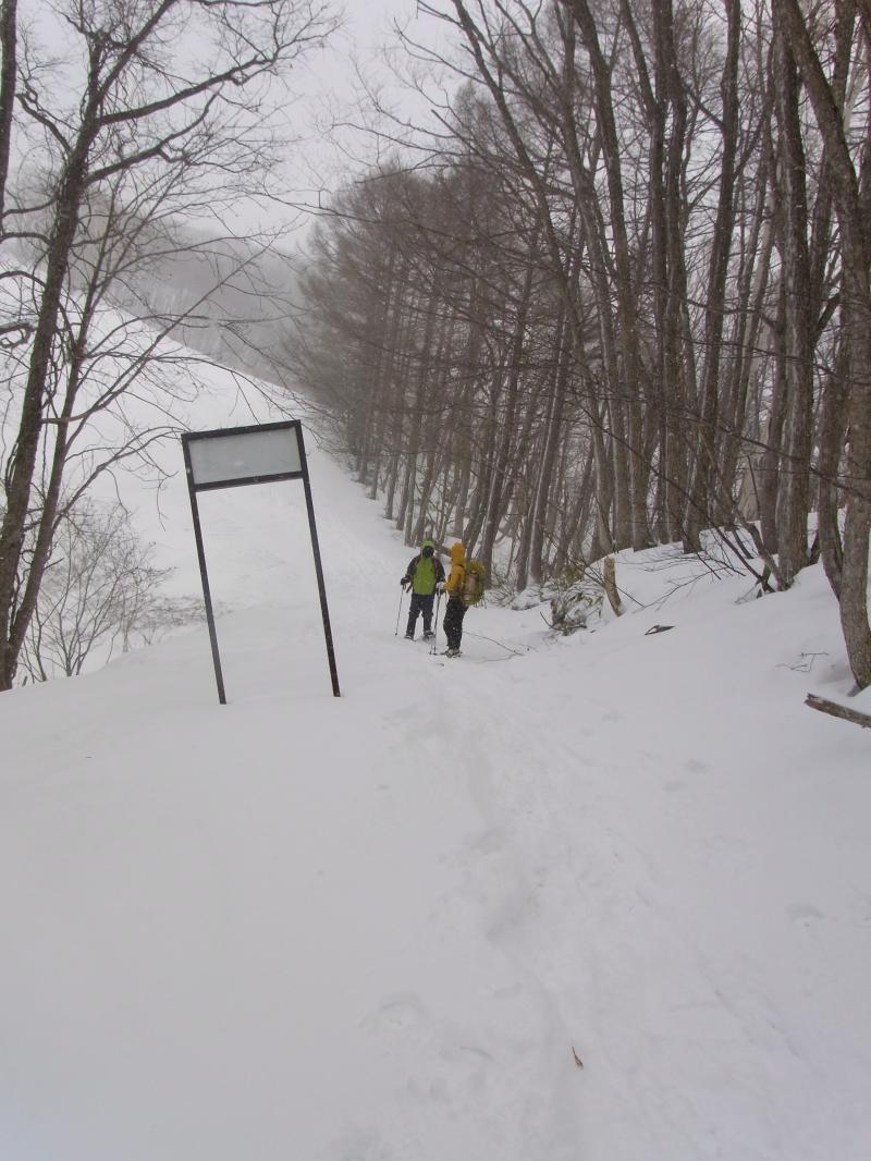宝台樹スキー場から第9クワッドリフトに乗り、裏見の滝を見に行くコースの予定でしたが、途中のコンビニあたりから雪が降り始め、なんだかんだでスタート時間も遅れたので、ショートカットして第7リフトから歩きはじめることにしました。