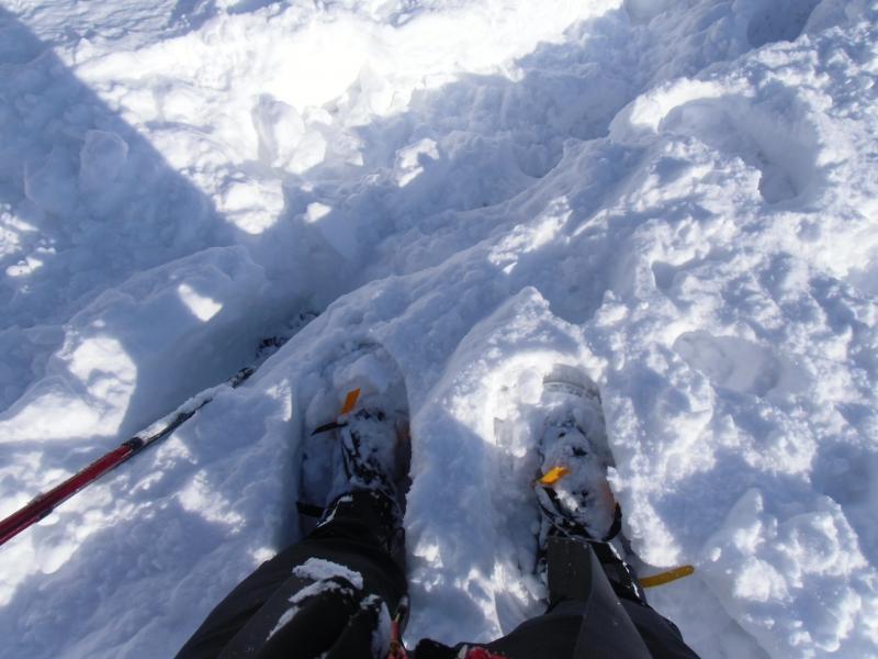 トレースはしっかりあったので、アイゼンのみで行けますが、トレースから少し外れるとズボッとはまりジタバタ。