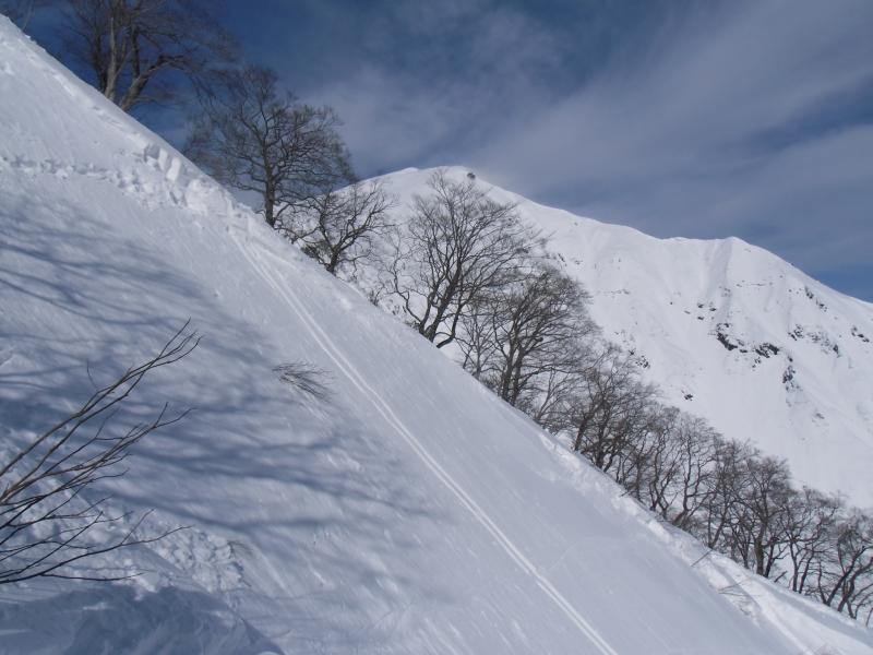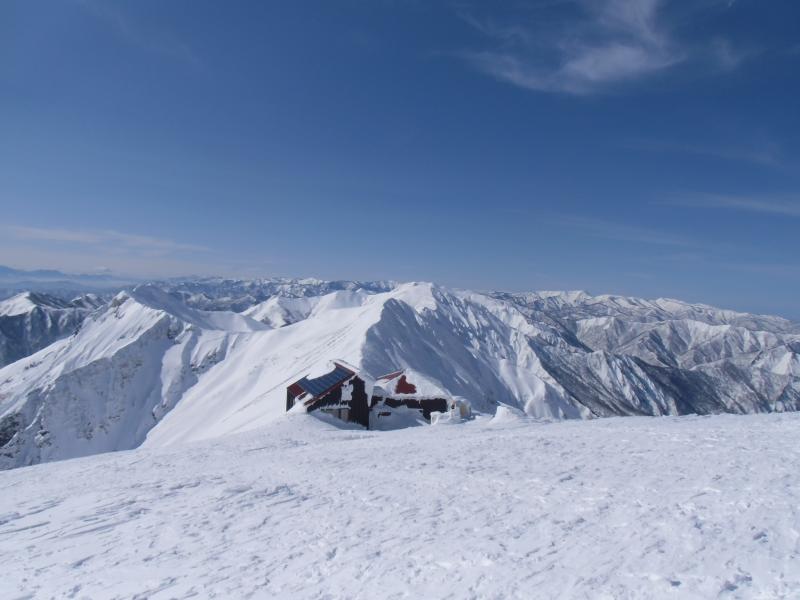 熊穴沢避難小屋までは踏まれており、雪が締まってます。