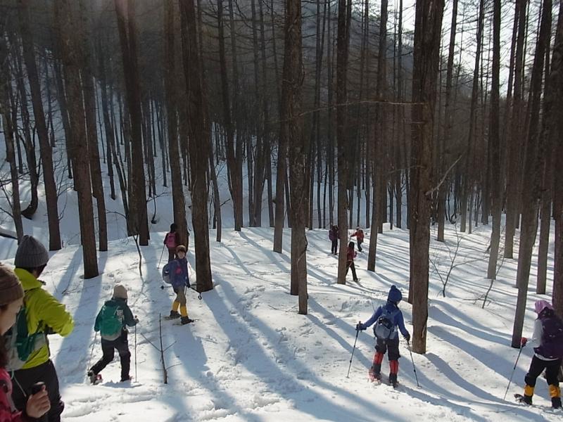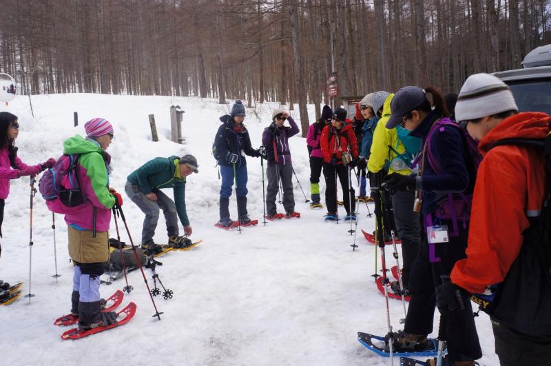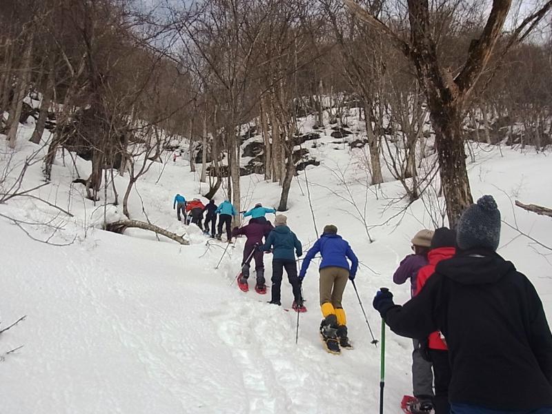 今回の参加者の半数以上が初スノーシュー!ということで、歩き始めはぎこちなく歩いていた方も、