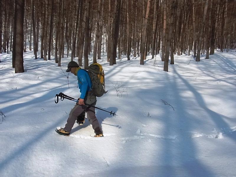 量は少なめでしたが締まった雪に柔らかい雪が積もっていて、スノーシューも問題なく使用できました。