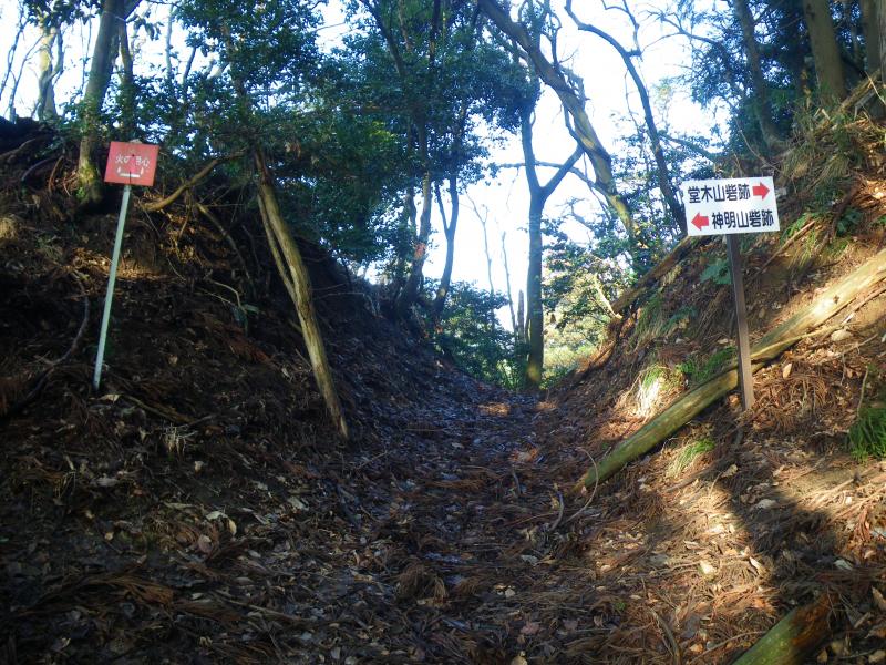 堂木山、神明山は獣除けの柵で分かれています。堀切には扉があり行き来が出来ました。