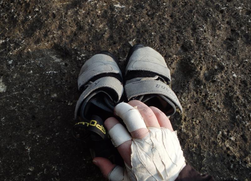 岩は花崗斑岩で、手を入れるとギザギザしておりテーピング(指も)必携。