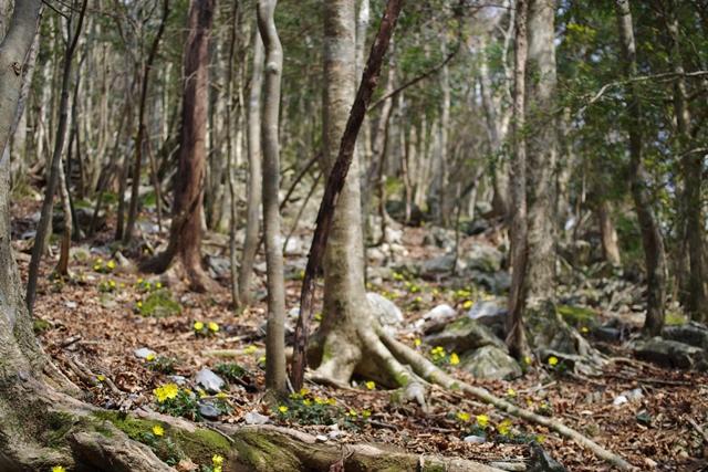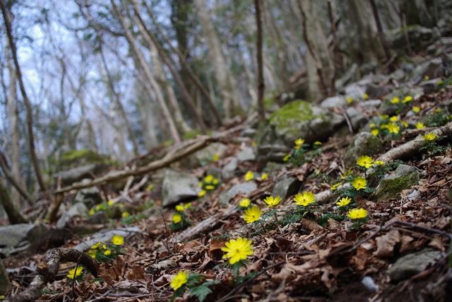 登山道は歩きにくいですが、福寿草はたくさん咲いていました。