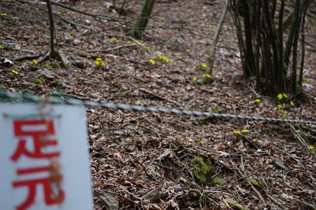 福寿草保護のため、ルートの両端にはロープが張ってあります。