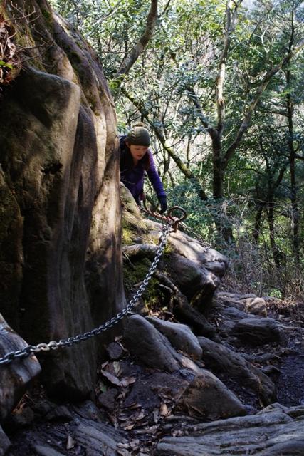 多良岳への手前の登りは岩場があります。鎖が新しくつけてありますが、滑落、スリップに注意して進んでください。