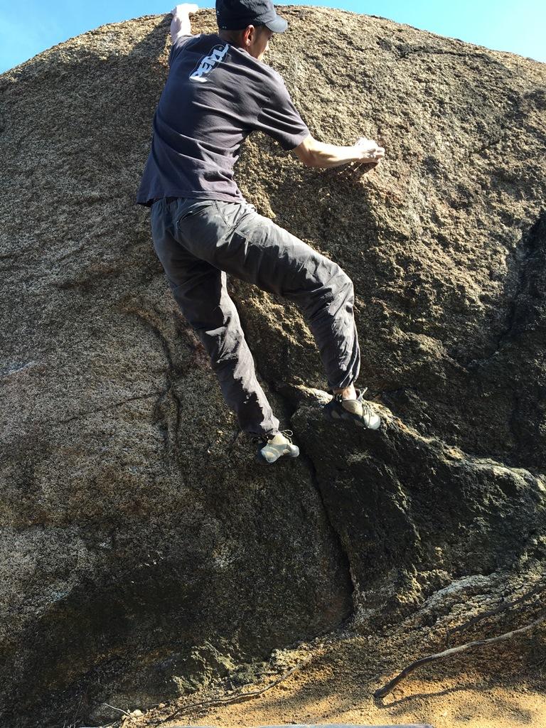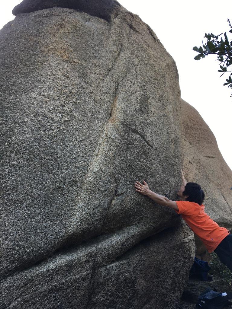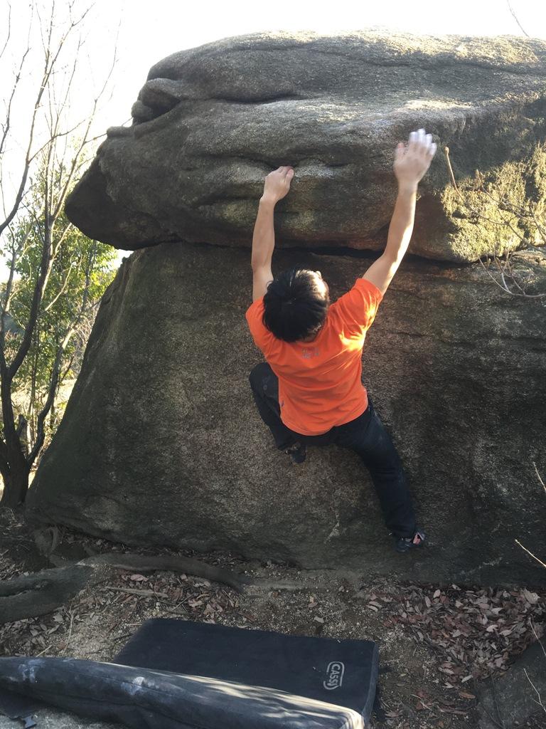 ⑪一つのボルダーに一つのライン。贅沢です。スタート位置がよくわからなかったのでできるだけ低い位置からセパレートスタート。
