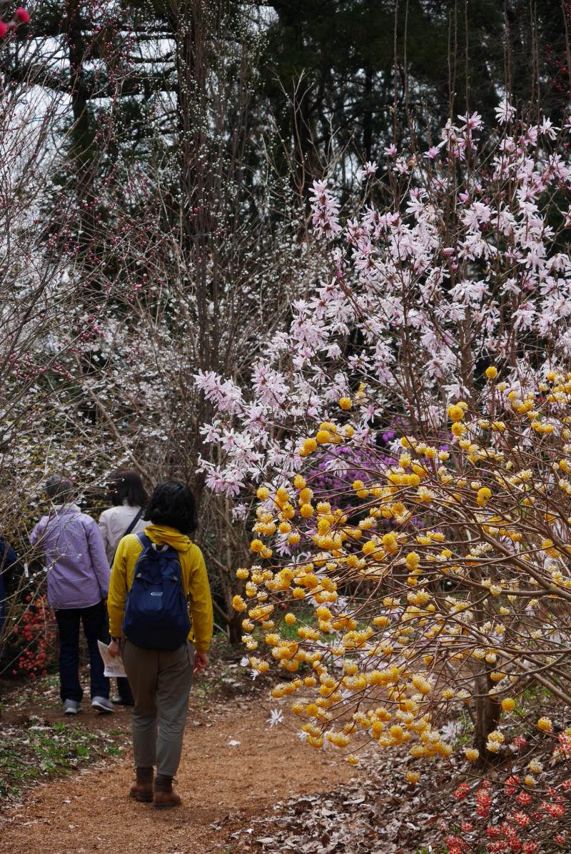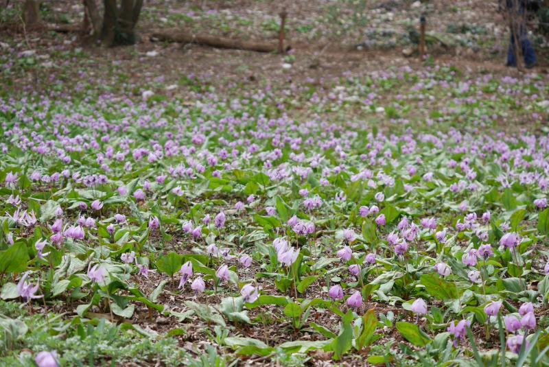 カタクリや山の花が見られる「カタクリの里」へ行って来ました。定期バスだとバス停から20分ほど歩かなくてはいけないそうですが、この時期は臨時便が出ていて目の前で停まってくれます。平日なのにかなり並んでいて1回では乗り切れず、数名の人が30分後の便に振り替えられていました。今年の臨時便は3月18日から4月10日の期間だそうです。