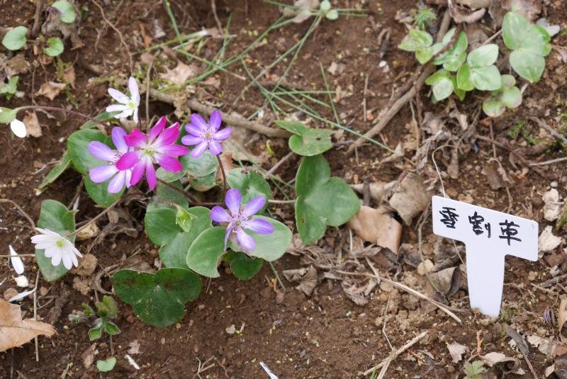 バスで20分ほどで到着し、受付で500円入園料を払うと、園内の地図を渡されました。手書きでびっしりと花の名前が書かれていますが、山の花はさりげなく咲いていることも多く、さらにまだ咲いていない花もあり、知識のない我々は地図と現物の照らし合わせに苦労しましたが、途中からなんとなく「これが雪割草では?」とわかってきました。すこしは覚えられたような気がします。