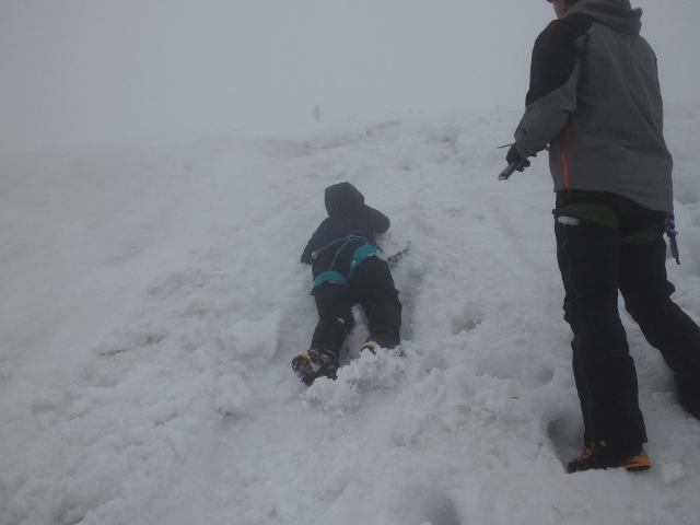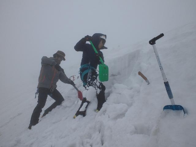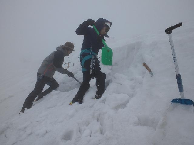 とりあえず、雪洞の彫り方を練習し続いて、滑落停止訓練やビレーの訓練を