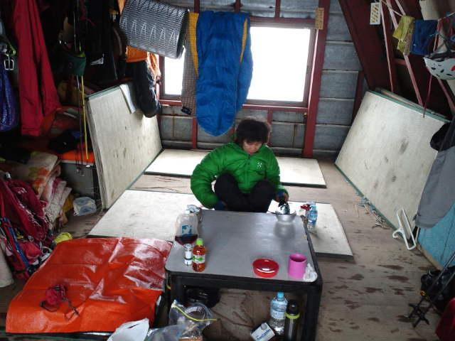 当初予定では、雪洞を堀、1泊する予定でしたが、雪が少なく断念しました