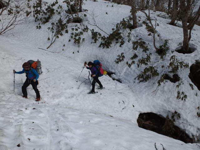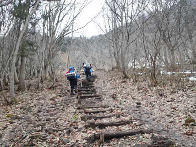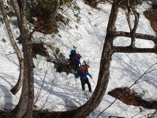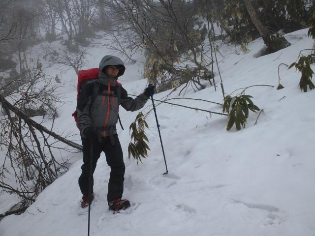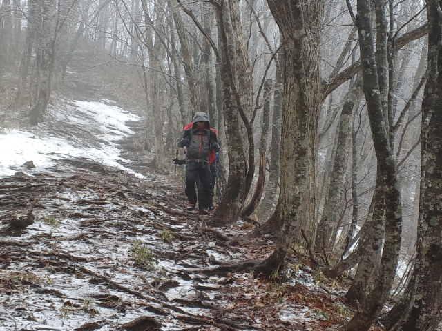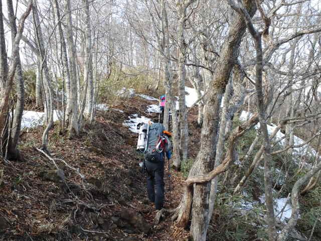 神大ヒュッテ手前のトラバース道辺りで雪が出てきます。