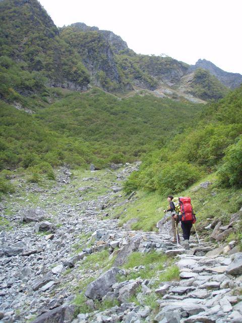 核心部で時間のゆとりができるよう早朝出発して、夜明け時には岩場の取り付き点に着く計画で慎重に行動しました。