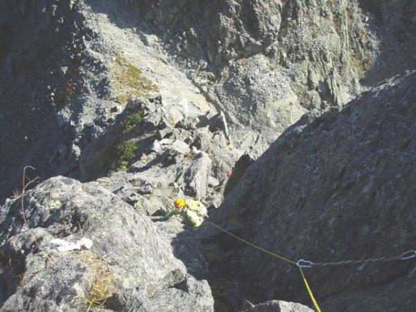 2峰の下りは懸垂下降ですが、クライムダウンも可能です。