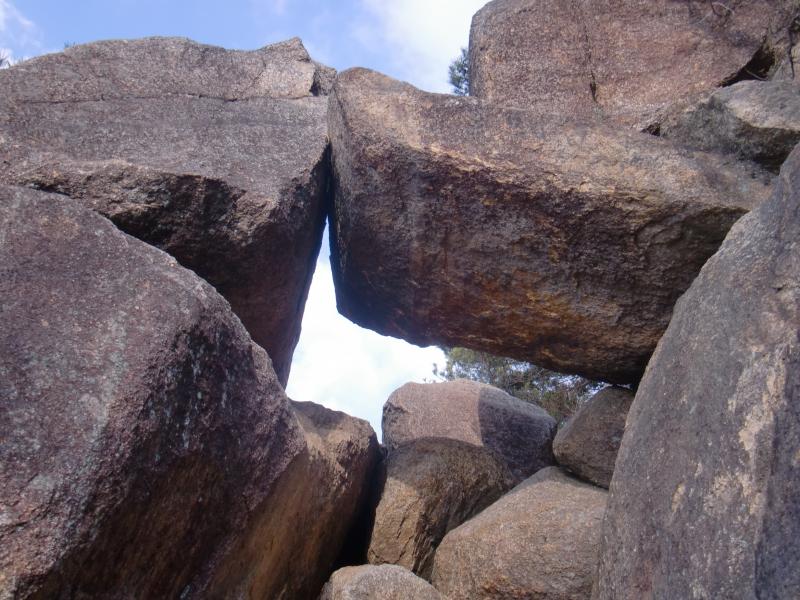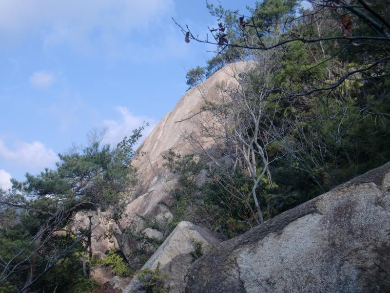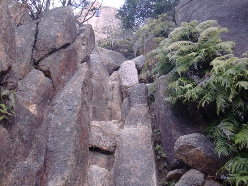岩梯子から三点支持にて両手を使う箇所あり。クライミングのゲレンデということもあり、踏み跡が多い。