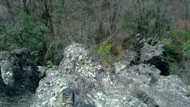 息を整えて下山開始。尾根伝いに下ると今回のコースのハイライトでもある猿岩の下り。