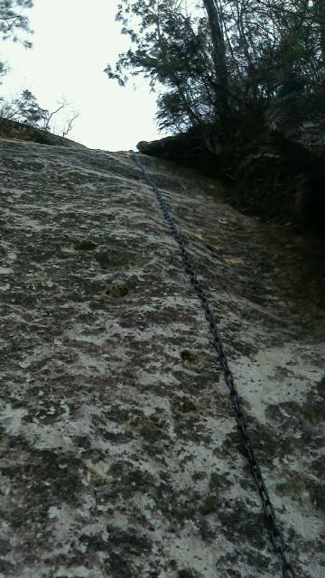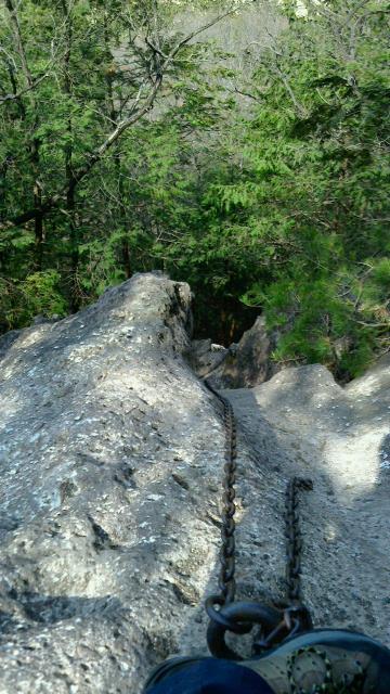 上部はステップもあり下りやすいですが、下部にいくにつれて岩がツルツル&傾斜が増します。ほとんど腕力頼みです。