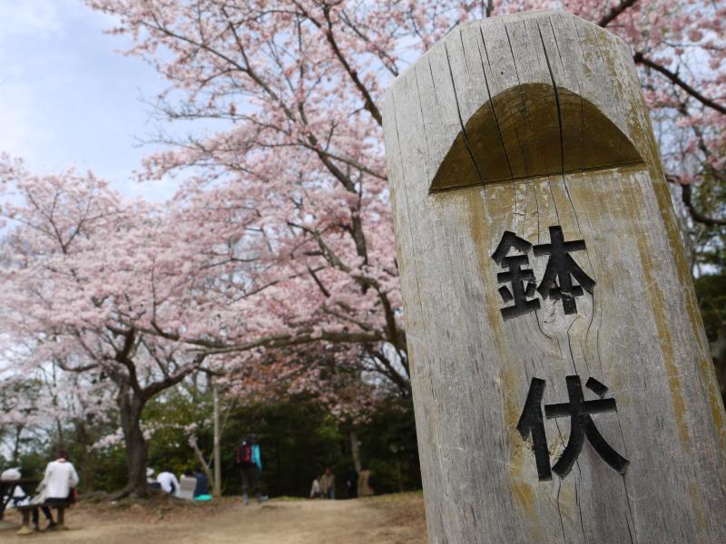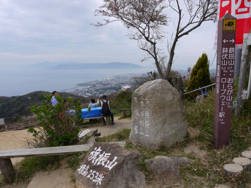 鉢伏山までの登山道にはほとんどサクラはありませんが、頂上は8分咲きのサクラを楽しむことができます。