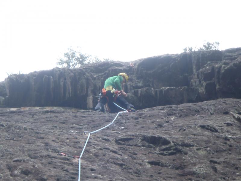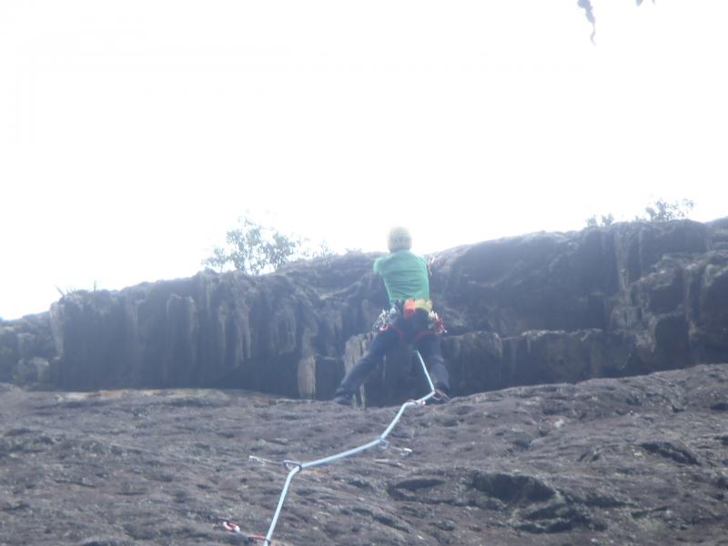 - 前日の雨で若干、岩が湿気をおびていたが登れました。