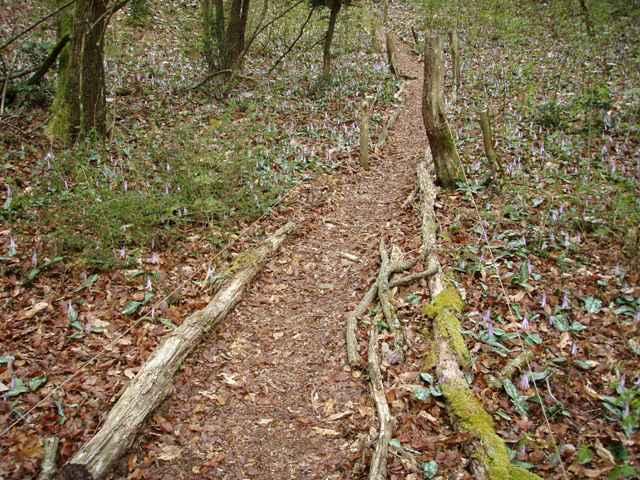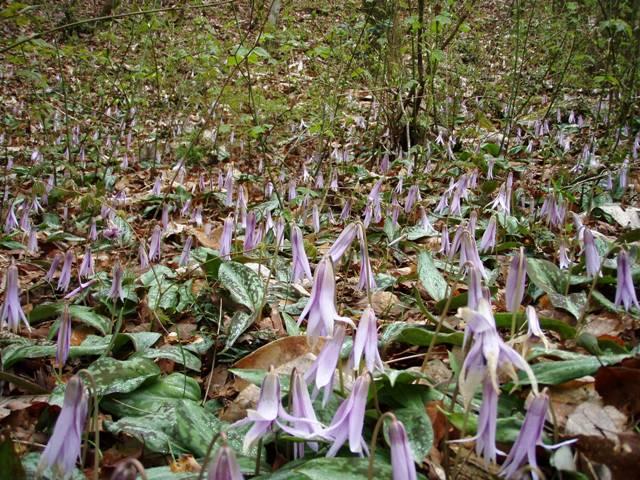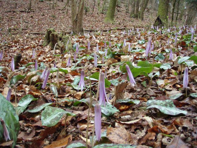そのまま道なりに進み山頂の200mほど手前にある柵で囲ったエリアがカタクリ群生地。朝早く曇り空のせいか、ほとんど花は下を向いていましたが今が見頃です。