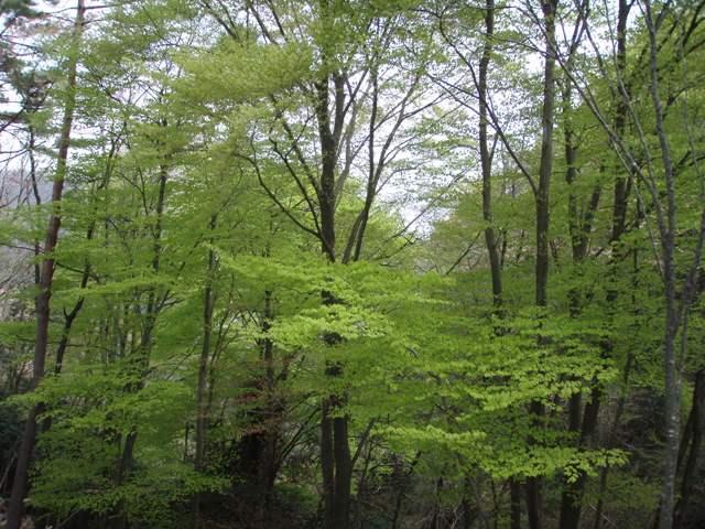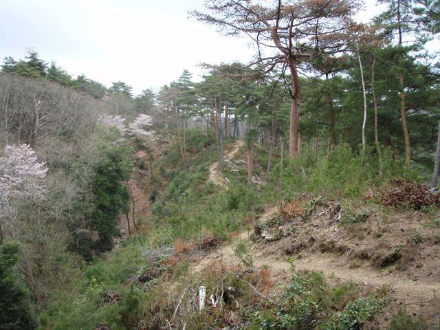 バス停・善峯寺から20分ほど府道を歩いて杉谷から入山。昨夏は通行止めで通れなかった府道ですが規制解除されていました。杉谷の薄暗い沢沿いから尾根道に出ると一気に周囲が明るくなります。