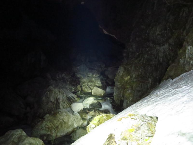 - 立山川はスナクボ岩屋で完全な雪切れで進行不可能