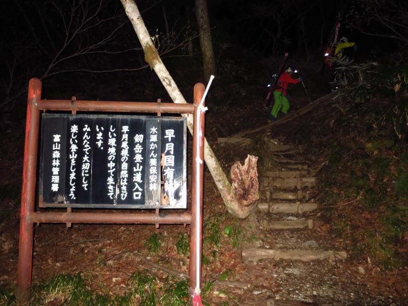 スキー靴のまま早月尾根を上がり標高1700m付近からシール歩行。