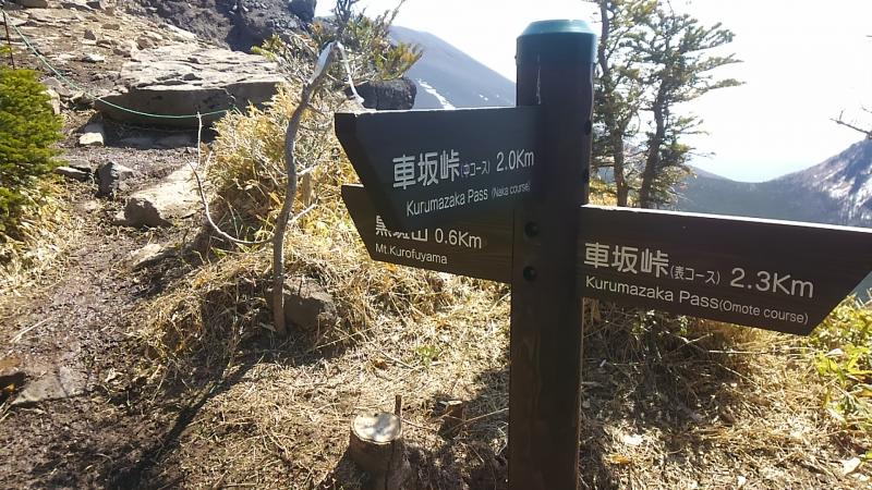 - 車坂峠≫表コース≫70分≫トーミの頭≫草すべり≫80分≫Jバンド≫24分≫仙人岳≫10分≫蛇骨岳≫40分≫黒斑山≫25分≫中コースと表コースの分岐≫中コース≫50分≫車坂峠