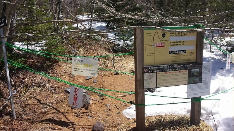 それ以外の箇所では、草スベリ~Jバンドの登り手前の樹林帯で欲しいです。黒斑山~蛇骨岳間もあると安心して歩けます。