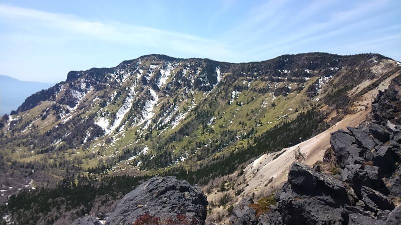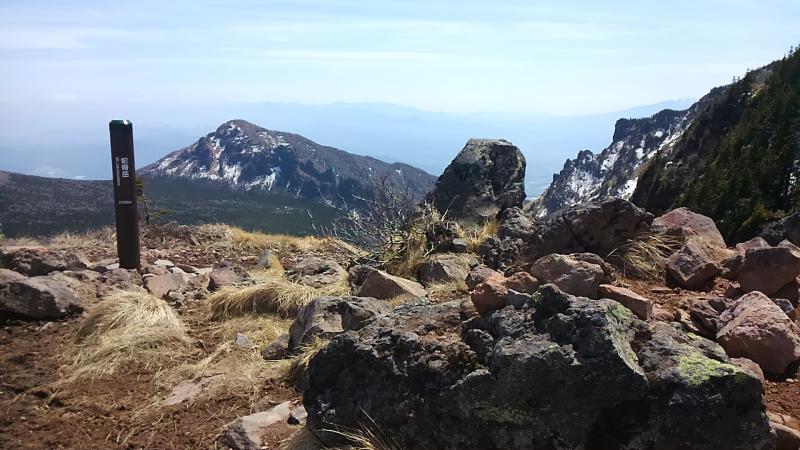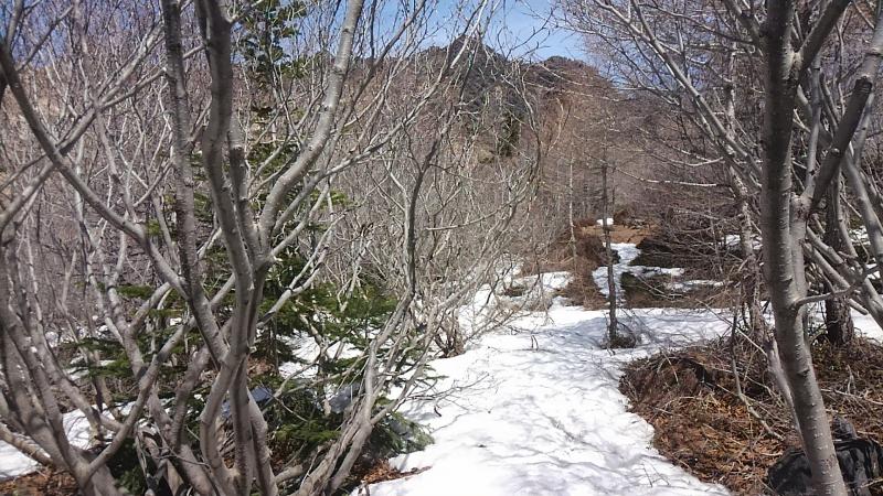 様相がやはり他の山塊に行くのと違います。笹がびっしりだったり背の低い松が早々に出てきたり、ガレ場だったり…。短い時間で色々と見せられ、とにかく楽しい。丹沢の鬱蒼淡々とした感じと違う…。普段行くことの多いフィールドよりバラエティに富んだ風景の変化が羨ましく映ります。