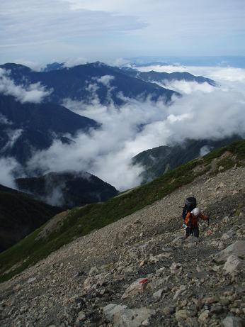 聖岳、兔岳への登りが結構あるのでのんびりと高度を稼ぎました。天候も良くて眺めが最高でした。兔岳から百閒洞山の家までの歩きは疲れました。