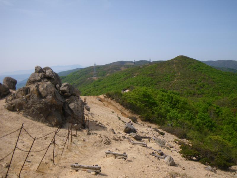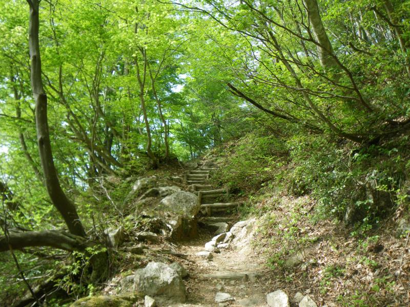 昔、来たときはまだ残雪があったかと思いますが、今年は暖冬で当然なく、栗柄越付近と三国山山腹のカタクリ、三国山山腹のトクワカソウはほとんど枯れていて遅かったです。気温は高いものの稜線沿いはさわやかな風が吹き、とても歩きやすい一日で、三国山山腹のブナ林の新緑がまぶしく見えました。