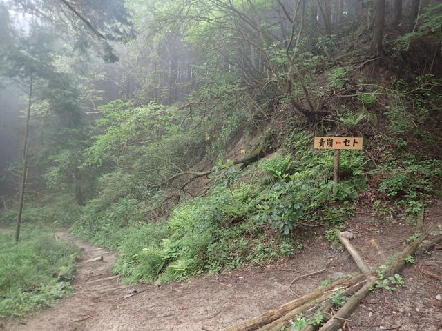 分岐から青崩道登山口までは急坂ですが危ない箇所はありません。