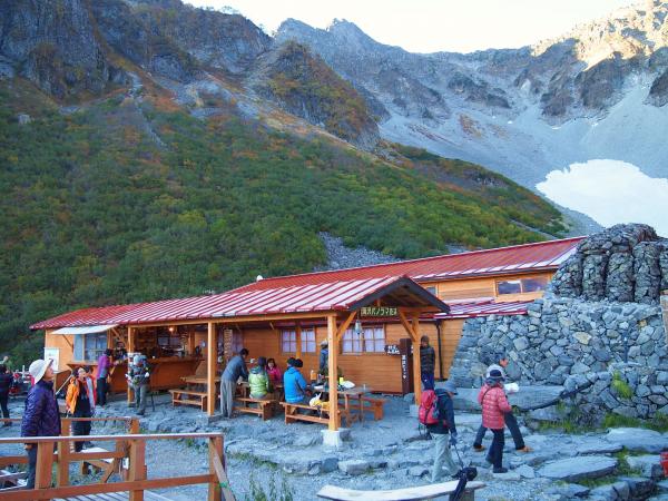 備え付けのレンタル用のテントもあります。涸沢ヒュッテと涸沢小屋の間に、