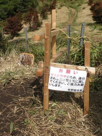 途中にこんな看板が!牛さん達が外に出ない為の工夫です。